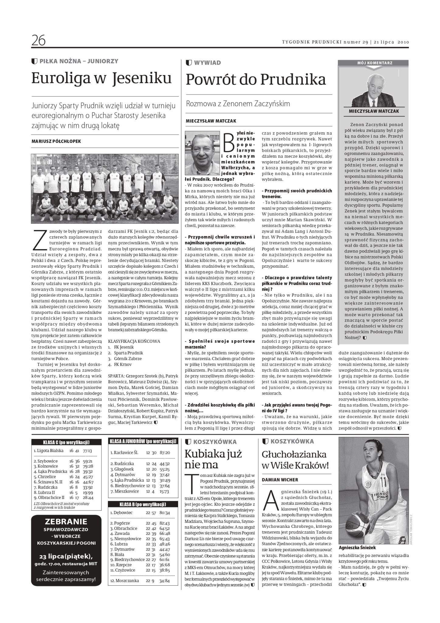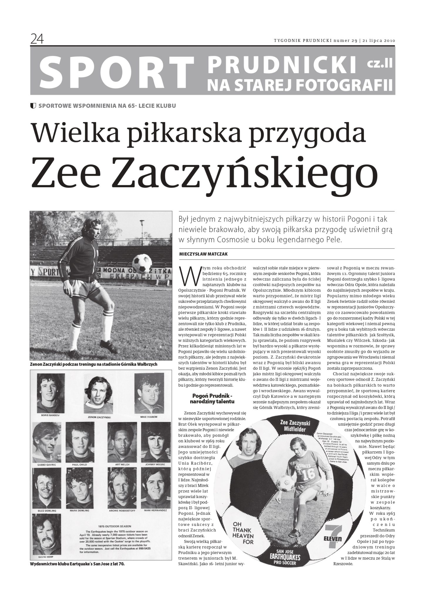 ARTYKUŁ O ZENONIE ZACZYŃSKI W TYGODNIKU PRUDNICKIM, NR 29 Z 21 LIPCA 2010 ROKU: