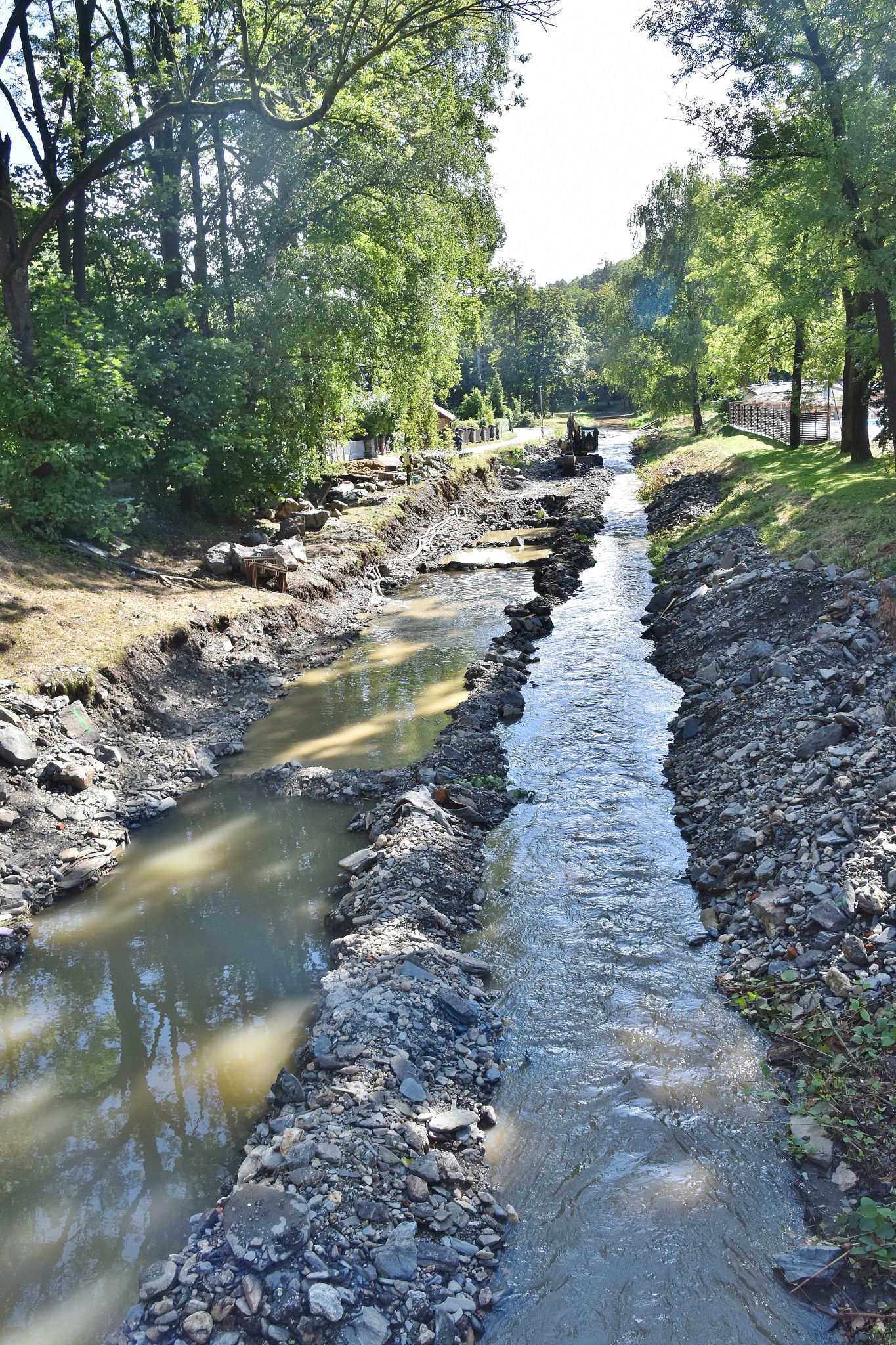 – Od września 2024 roku w rejonie zrealizowano już 44 zadania o wartości ponad 2 mln zł, wśród których najważniejszymi było zabezpieczenie Złotego Potoku w Jarnołtówku i Pokrzywnej – informują Wody Polskie. – Trwa realizacja zadań, dotyczących usuwania skutków powodzi w korytach rzeki Złoty Potok oraz Potok Bystry, m.in. na terenie pow. nyskiego i prudnickiego. Wykonawca prac sukcesywnie porusza się wzdłuż koryt cieków usuwając szkody, jakie wielka woda wyrządziła tam we wrześniu 2024r. (…) Realizacja zadań ma na celu odtworzenie stanu przedpowodziowego poprzez wyremontowanie poszczególnych miejsc przez zabudowę wyrw, wykonanie narzutów kamiennych, itp. w korycie Złotego Potoku.
