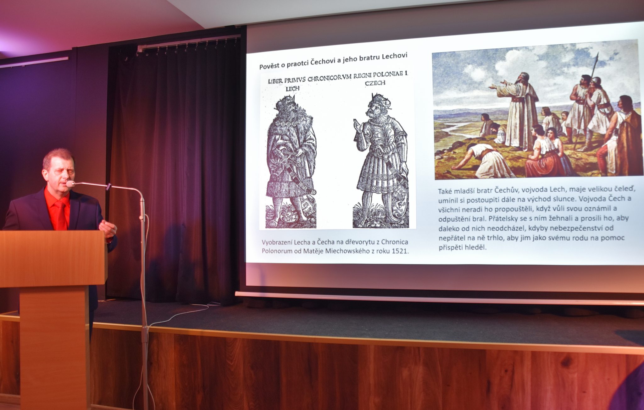 Spotkanie rozpoczął Marian Hrabovský (dyrektor szkoły podstawowej w Osobłodze), który z czeskiej perspektywy opisał polsko-czeskie relacje, zarówno na poziomie narodowym, jak i lokalnym. Było więc o czeskich królach na polskim stolcu, i odwrotnie – o polskich, polsko-litewskich władcach na tronie na Hradczanach. Były historie piękne, jak ślub piastowskiego Mieszka I z przemyślidzką Dąbrówką, jak i te tragiczne – jak okrutny najazd czeskiego księcia Brzetysława na Wielkopolskę, czy spór o Zaolzie. Hrabovský z humorem (choć pokerową miną) wspominając o gospodarczych relacjach prezentował na zdjęciach z sąsiedniego Prudnika, czeskie samochody zaparkowane przed tamtejszymi sklepami – Lidlem, Kauflandem i Biedronką. Była wzmianka o słynnym podczas epidemii anektowaniu przez polskich żołnierzy czeskiej kapliczki w Pelhřimovie oraz o sporze o elektrownię Turów. Lokalne relacje to również wzajemne odwiedzanie się w celach turystycznych i gastronomicznych (tu nadal dominuje kierunek południowy) oraz już długoletnia tradycja realizowanych wspólnie projektów przez polskie i czeskie urzędy, instytucje i organizacje, przede wszystkim za pośrednictwem Euroregionu Pradziad.