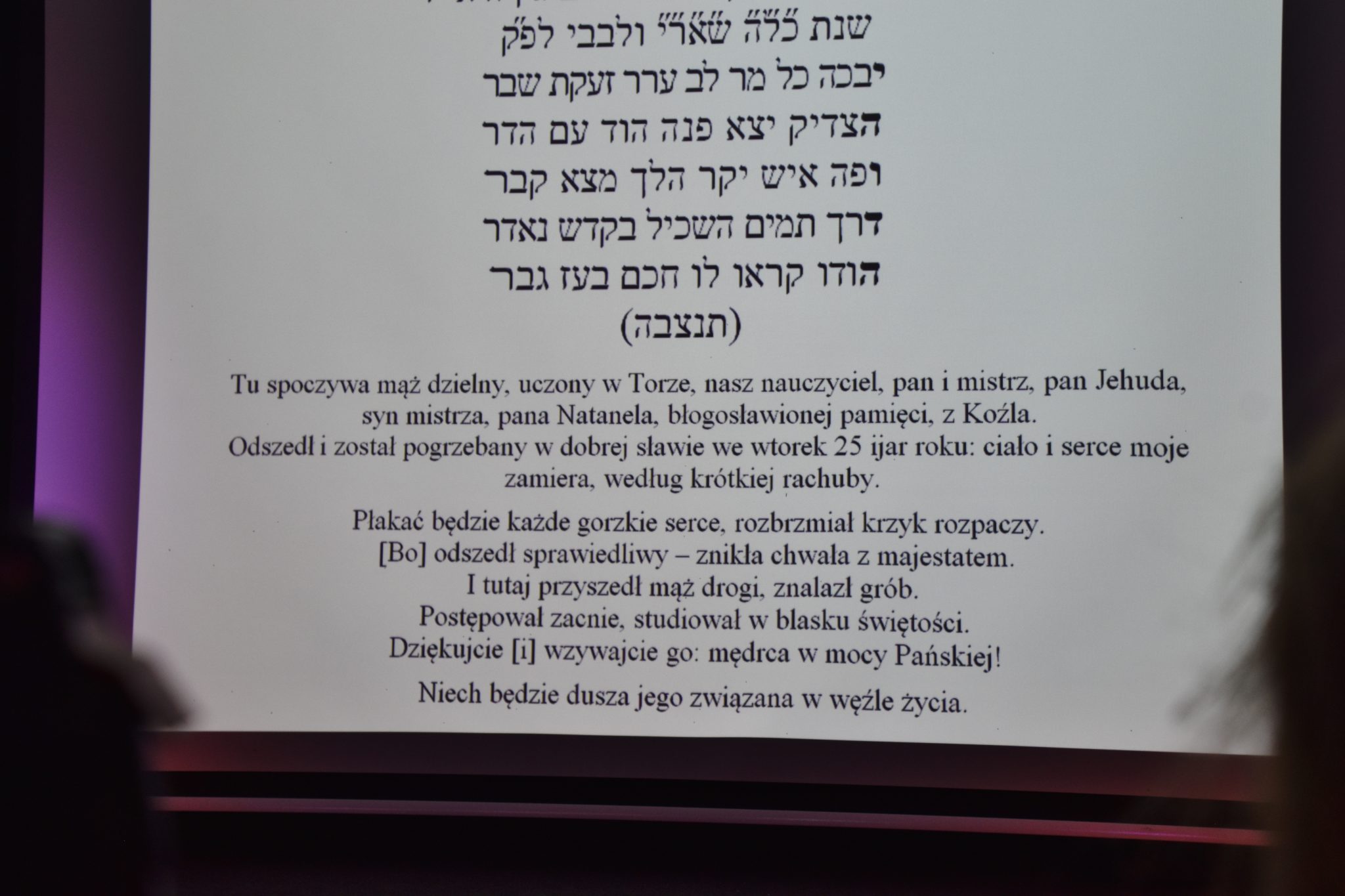Dr Sławomir Pastuszka w ostatnim wykładzie w interesujący sposób objaśnił treść inskrypcji na jednej z macew bialskiego cmentarza żydowskiego, pod którą pochowany został Jehuda, syn Natanela z Koźla. Dzięki temu można się było dowiedzieć, co takiego Żydzi pisali na grobach oraz jak przeliczać żydowski czas na obecnie obowiązujący.