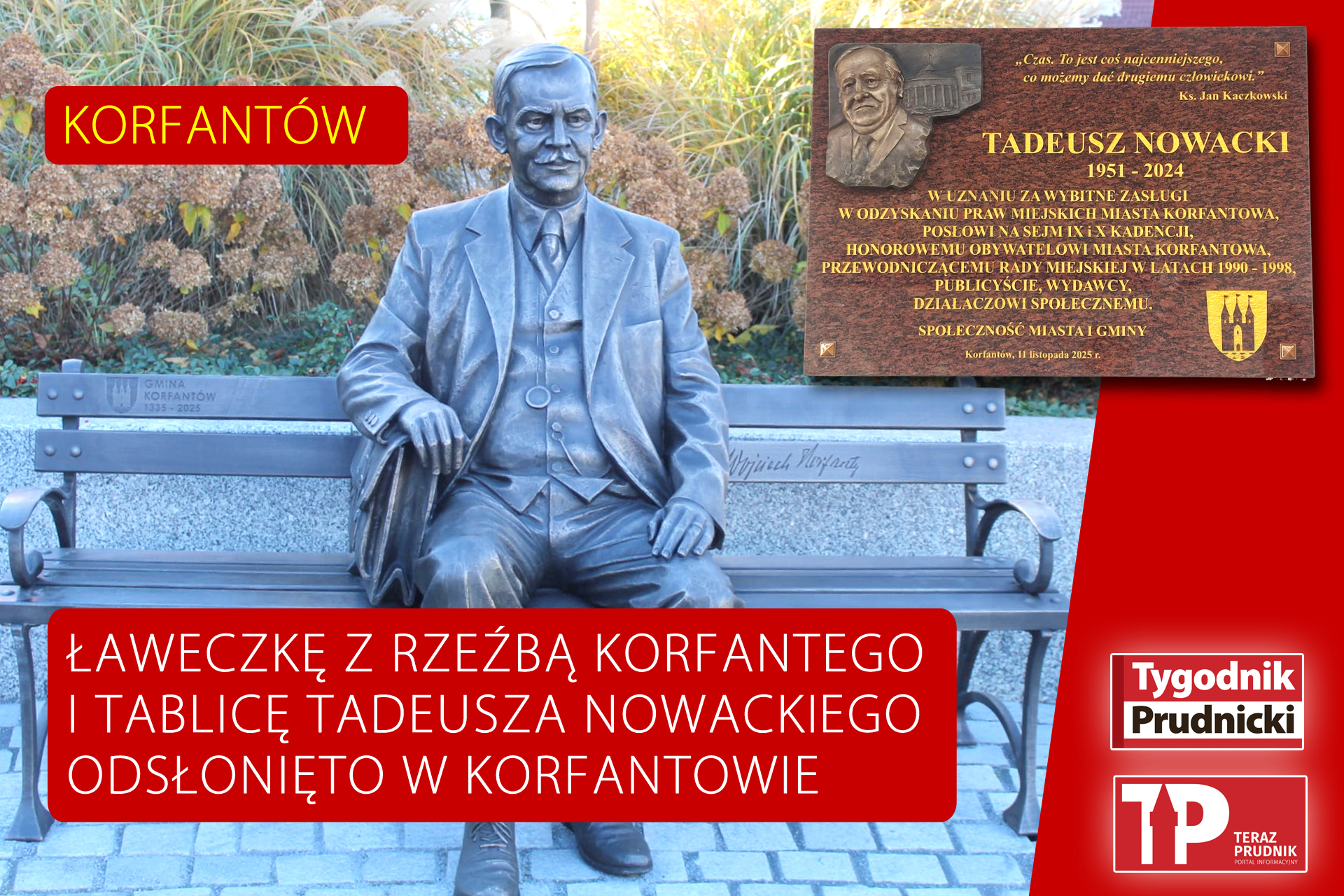 W Korfantowie odsłonięto ławeczkę z rzeźbą przedstawiającą Wojciecha Korfantego oraz tablicę poświęconą pamięci Tadeusza Nowackiego.