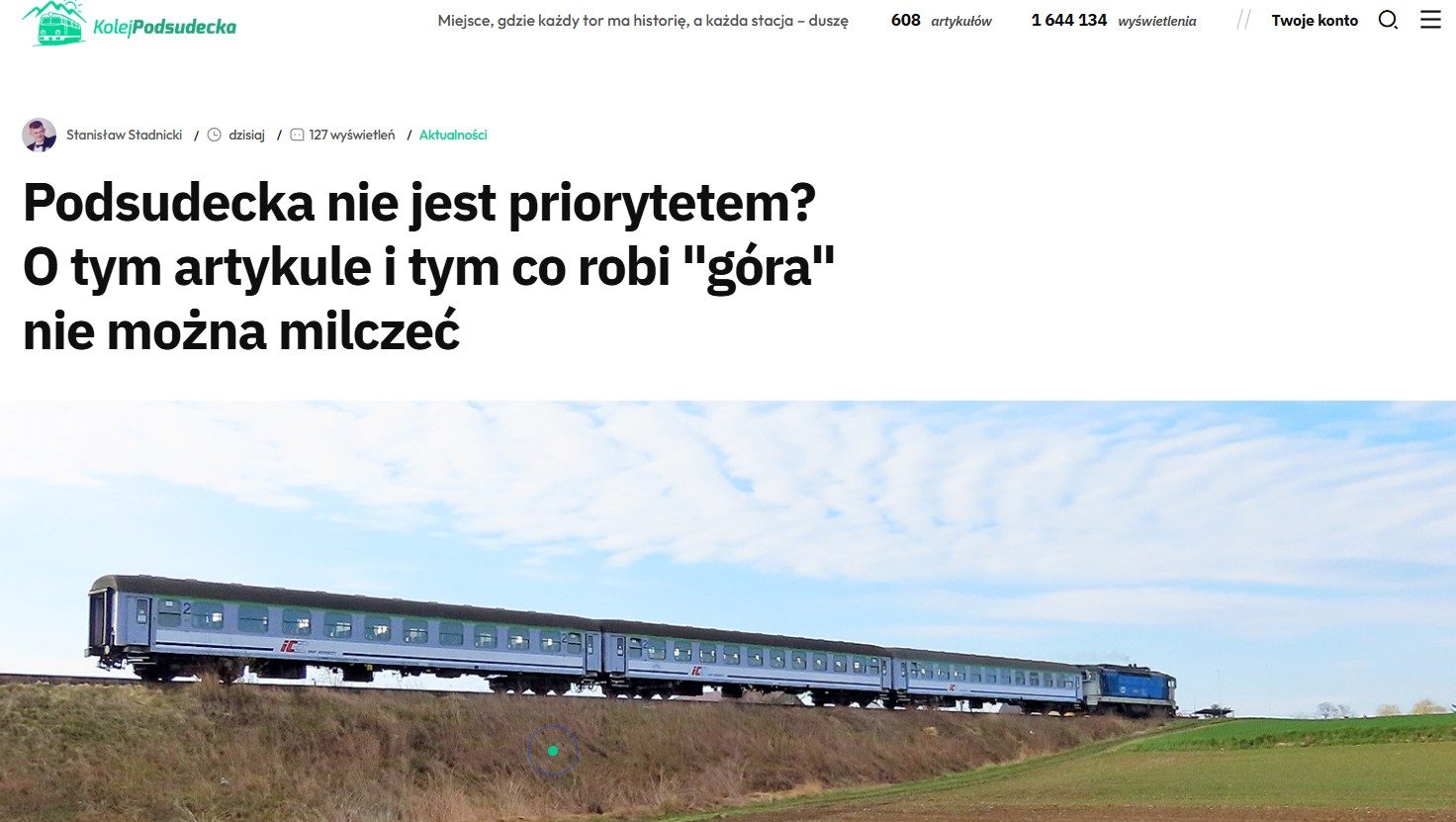 Dzisiaj (22 listopada) opublikował artykuł pod tytułem „Podsudecka nie jest priorytetem? O tym artykule i tym co robi >góra< nie można milczeć”, w którym pisze o konieczności walki o elektryfikację Magistrali Podsudeckiej. Pretekstem do napisania tekstu jest materiał na portalu nto.pl „Podsudecka Magistrala Kolejowa nie jest priorytetem. Elektryfikacja linii ma kosztować pół miliarda”. Krzysztof Strauchmann dotarł do informacji, według której PKL nie zamierza elektryfikować żadnej linii kolejowej w województwie opolskim do 2030 r., choć jeszcze w październiku członkowie Zarządu Województwa Opolskiego zapowiadali, że elektryfikacja linii Nysa – Opole razem modernizacją, zrealizowana zostanie w ciągu 3-4 lat: „(…) na liście wymienionych przez przedstawicieli PLK linii nie ma żadnego odcinka na Opolszczyźnie” – pisze Strauchmann, cytując też szacunkowe koszty elektryfikacji linii przedstawione przez spółkę PKP PKL. Na tej podstawie obliczył koszt modernizacji odcinka Podsudeckiej między Kamieńcem Ząbkowickim, Nysą a Kędzierzynem-Koźlem na prawie pół miliarda złotych. Tylko, że plan PKP zakładał elektryfikację Magistrali etapami, a pierwszy objąłby tylko odcinek Nysa – Kędzierzyn-Koźle. Po drugie ogłoszony w październiku plan elektryfikacji linii Nysa – Opole, a następnie kolejne odcinki w ciągach na Kamieniec Ząbkowicki i Kluczbork oznaczałyby odległości znacznie większe, a przez to kosztowniejsze do realizacji.
