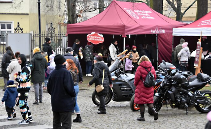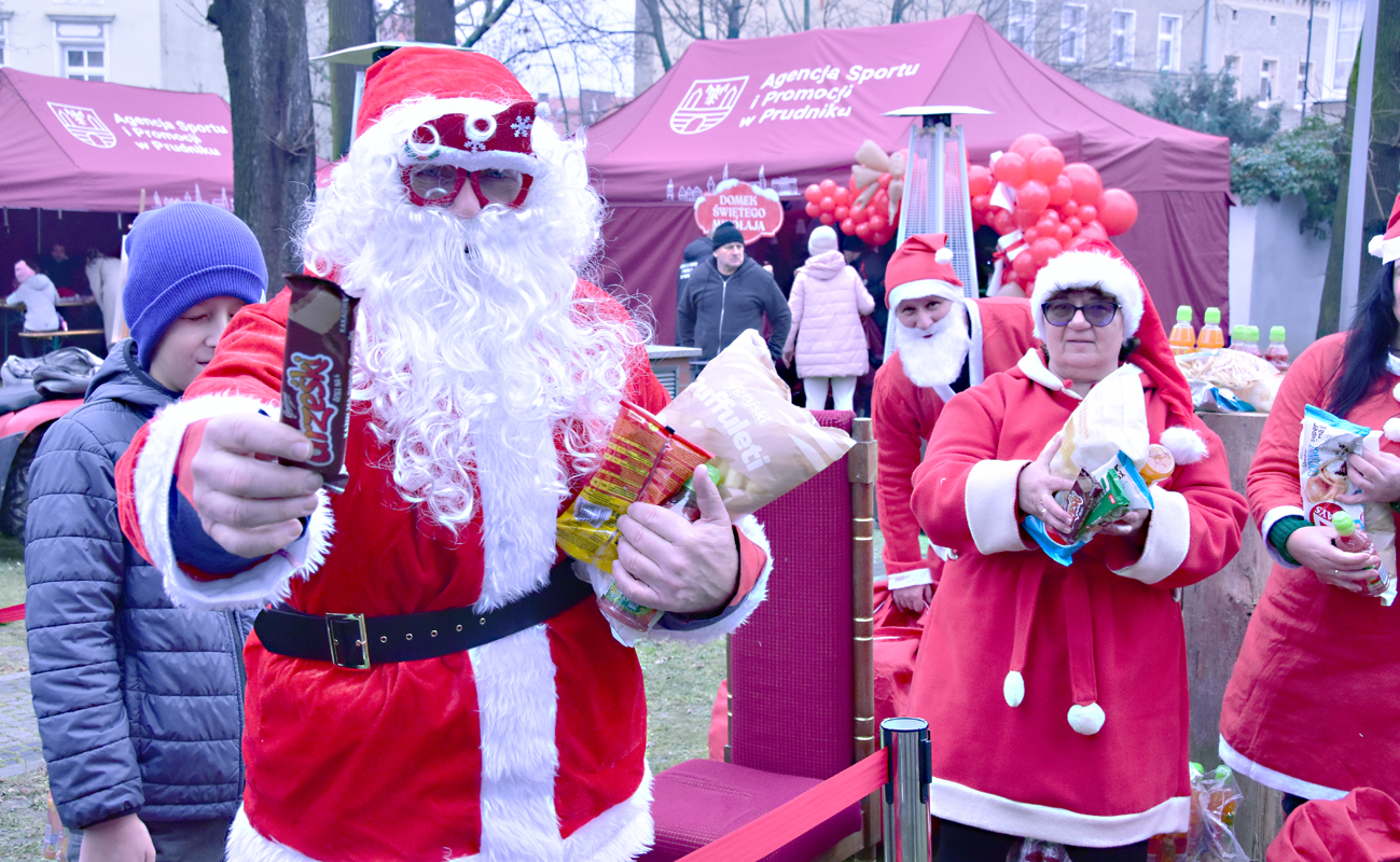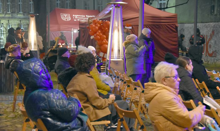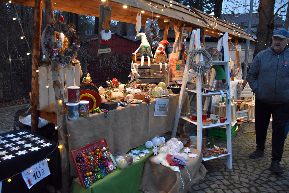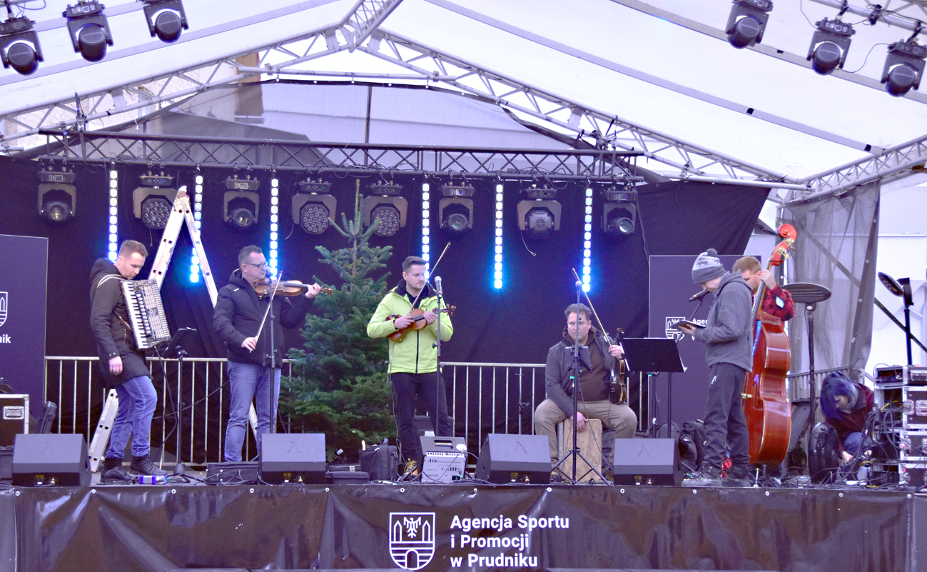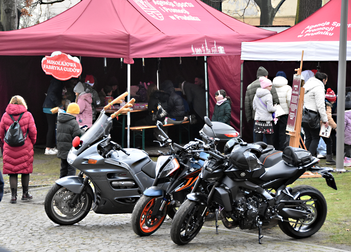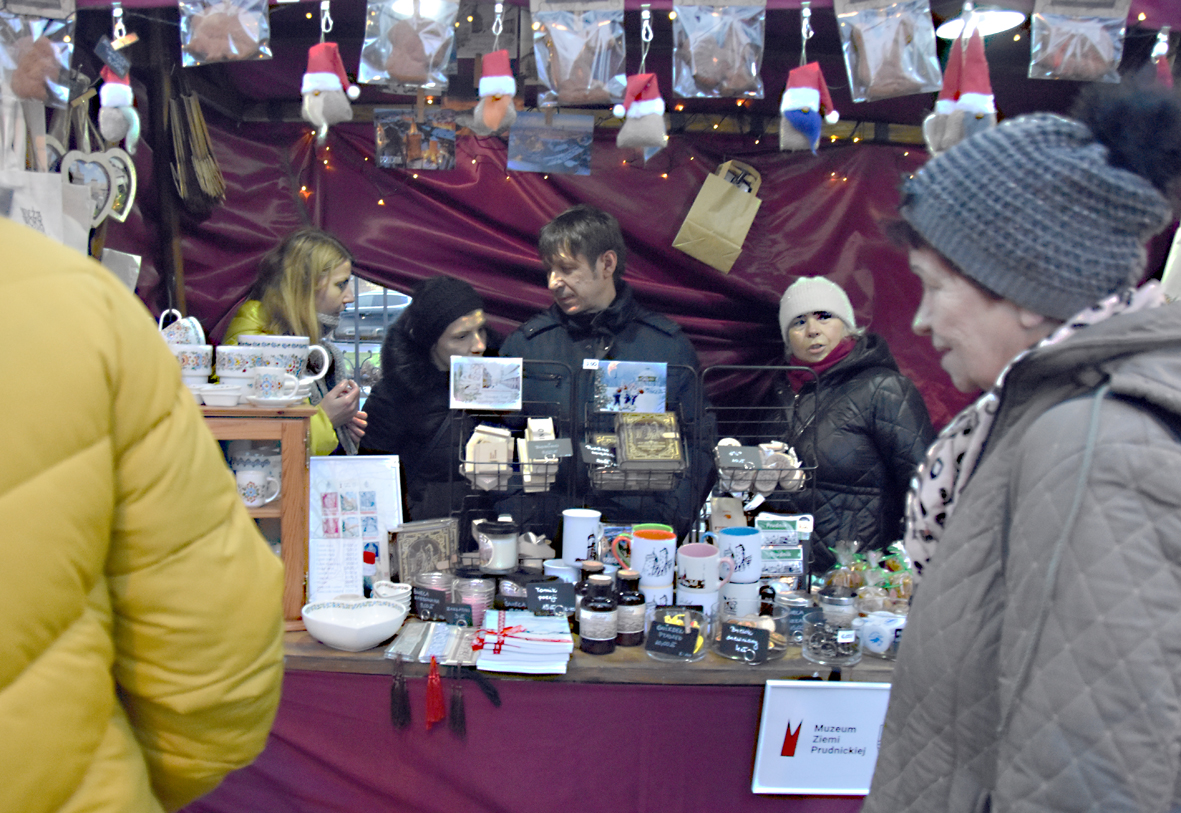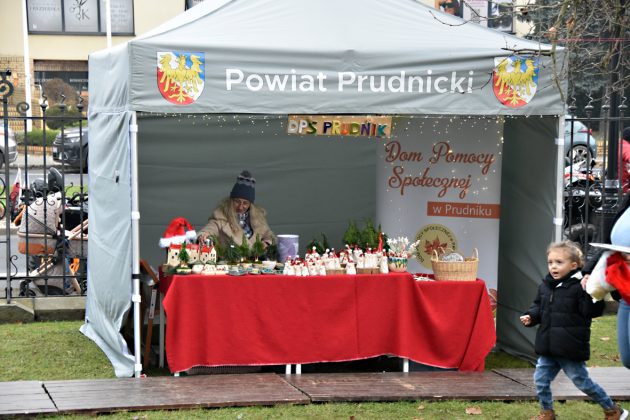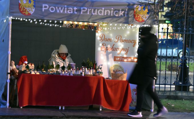 W sobotę 6 grudnia Agencja Sportu i Promocji w Prudniku zaprosiła do ogrodu Prudnickiego Ośrodka Kultury do udziału w Jarmarku Bożonarodzeniowym. Było mnóstwo stoisk: rękodzielnicy, twórcy ludowi, artyści, rzemieślnicy, szkoły, stowarzyszenia i instytucje, przedsiębiorcy i osoby prywatne oferujący świąteczny asortyment, w godz. od 10.00 do 20.00. Na plenerowej scenie obok POK występowali: Dziecięce i Młodzieżowe Studio Piosenki POK, Dominika Puchała, Kamila i Grzegorz Mięczakowscy, zespół The Backyard Project i Emilia Kawa, uczniowie I LO w Prudniku, Dawid Brzozowski, Piotr Szewczyk z kapelą góralską. Było oczywiście spotkanie z Mikołajem, Mikołajkowa Gra Terenowa, warsztaty malowania bombek z Agatą Wilczek, degustacje potraw wigilijnych. Dodatkowo, na wydarzenie przybyli MotoMikołaje. Barwny przejazd Mikołajów na motocyklach i quadach, tego dnia dotarł do Prudnickiego Ośrodka Kultury. Aura była niemal wiosenna i choć bark śniegu i zimowego klimatu, to jednak ciepły wieczór sprzyjał niespiesznemu zwiedzaniu, oglądaniu występów, konsumpcji i zakupom.
