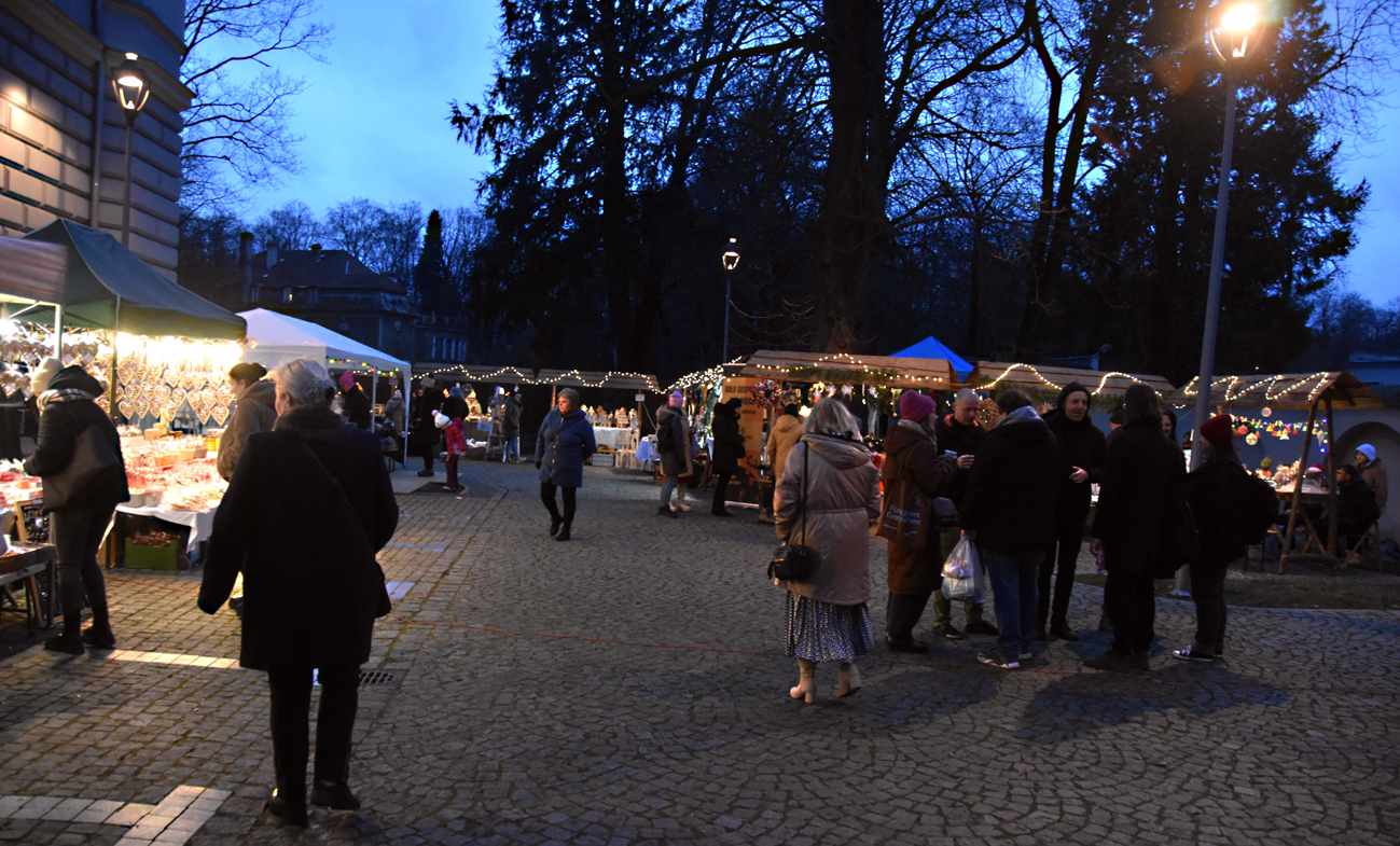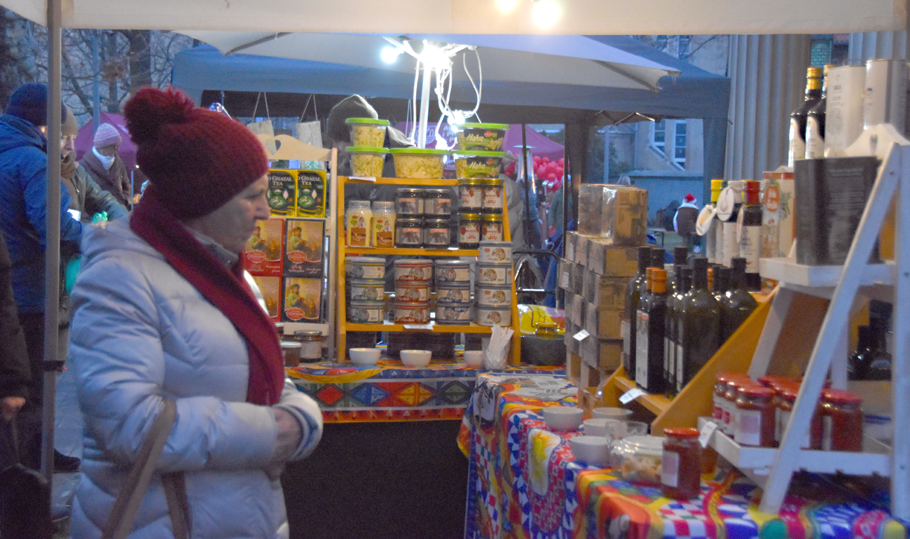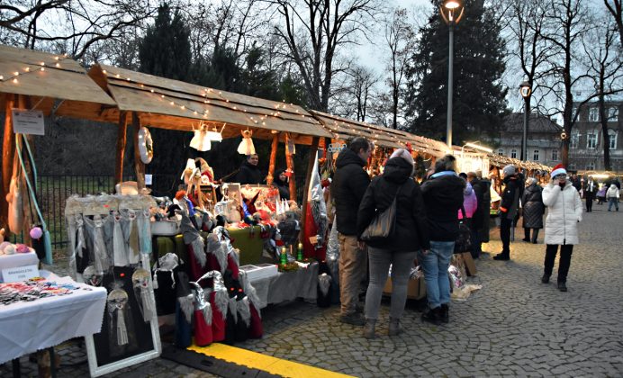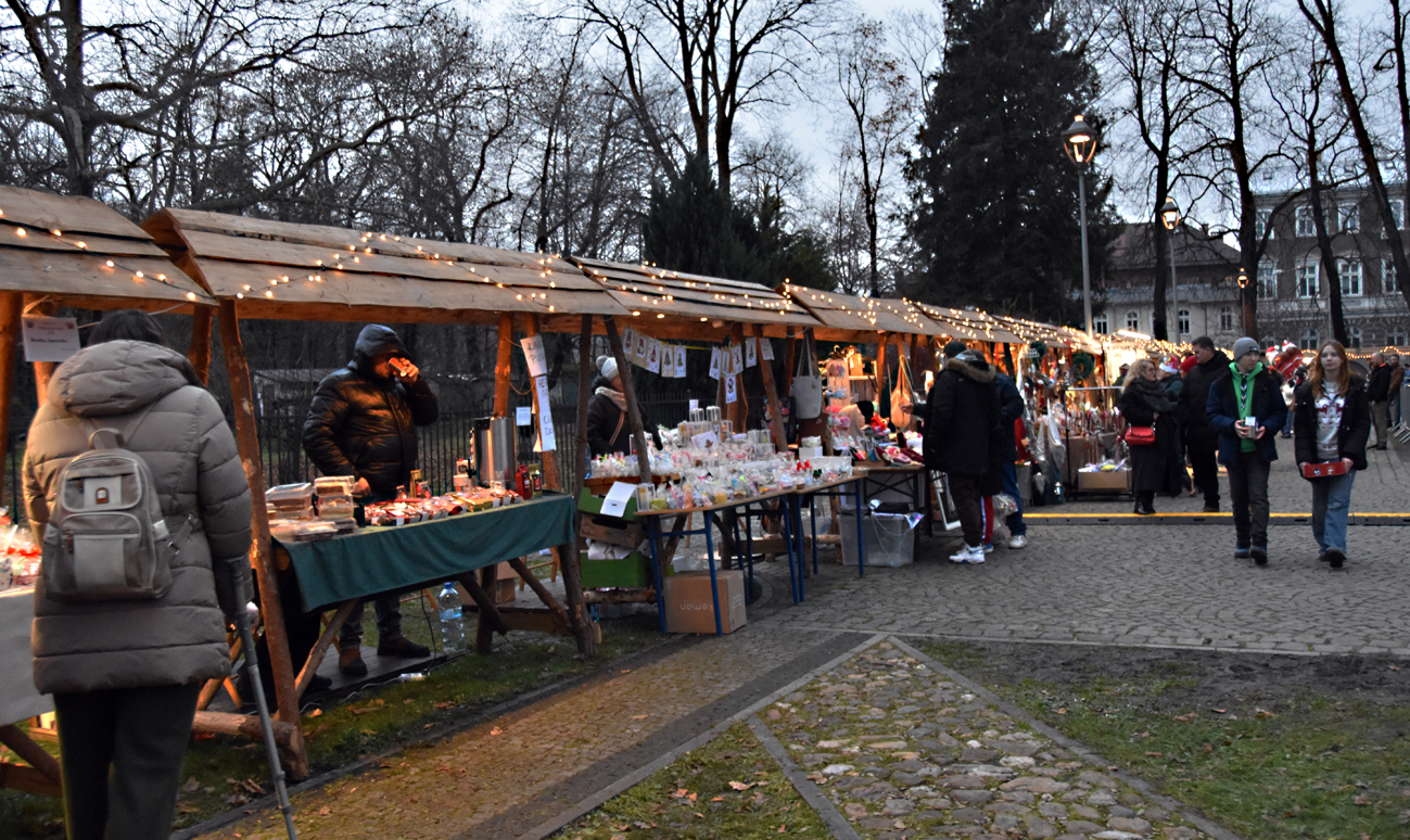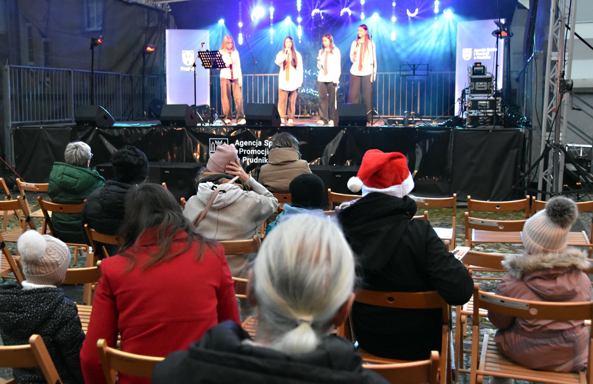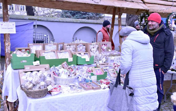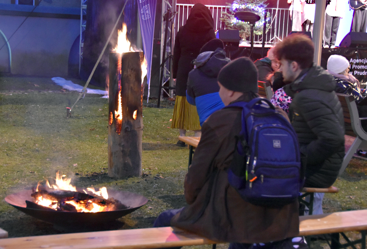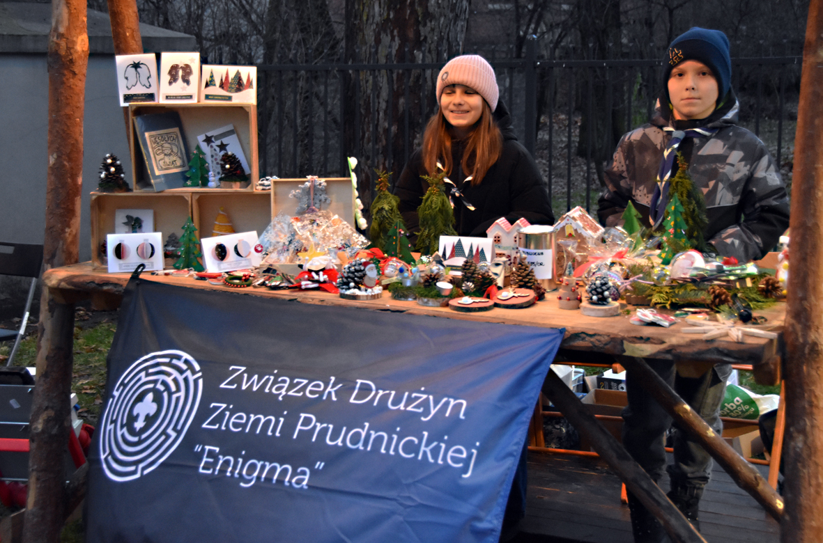 W sobotę 6 grudnia Agencja Sportu i Promocji w Prudniku zaprosiła do ogrodu Prudnickiego Ośrodka Kultury do udziału w Jarmarku Bożonarodzeniowym. Było mnóstwo stoisk: rękodzielnicy, twórcy ludowi, artyści, rzemieślnicy, szkoły, stowarzyszenia i instytucje, przedsiębiorcy i osoby prywatne oferujący świąteczny asortyment, w godz. od 10.00 do 20.00. Na plenerowej scenie obok POK występowali: Dziecięce i Młodzieżowe Studio Piosenki POK, Dominika Puchała, Kamila i Grzegorz Mięczakowscy, zespół The Backyard Project i Emilia Kawa, uczniowie I LO w Prudniku, Dawid Brzozowski, Piotr Szewczyk z kapelą góralską. Było oczywiście spotkanie z Mikołajem, Mikołajkowa Gra Terenowa, warsztaty malowania bombek z Agatą Wilczek, degustacje potraw wigilijnych. Dodatkowo, na wydarzenie przybyli MotoMikołaje. Barwny przejazd Mikołajów na motocyklach i quadach, tego dnia dotarł do Prudnickiego Ośrodka Kultury. Aura była niemal wiosenna i choć bark śniegu i zimowego klimatu, to jednak ciepły wieczór sprzyjał niespiesznemu zwiedzaniu, oglądaniu występów, konsumpcji i zakupom.
