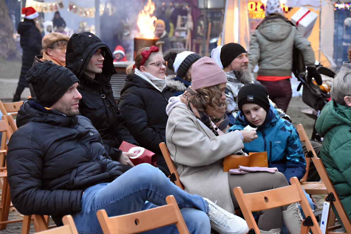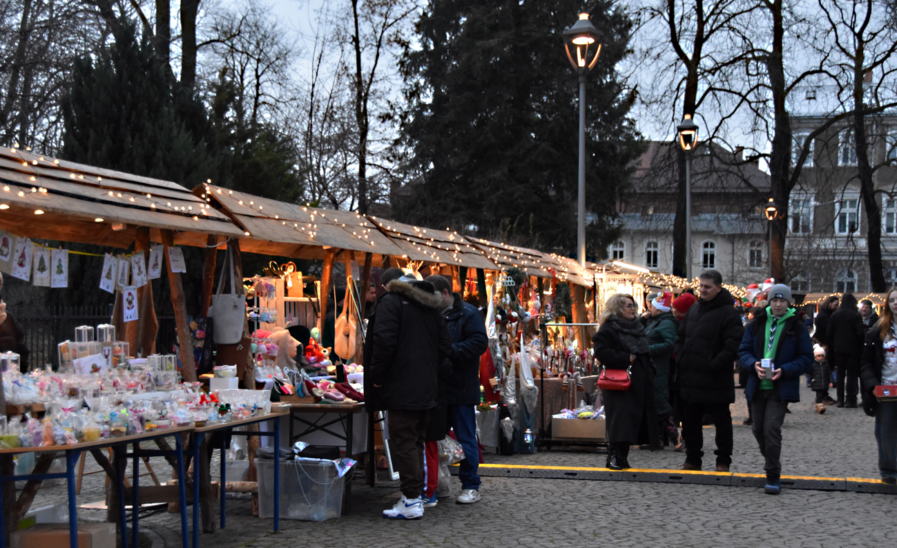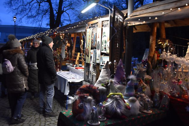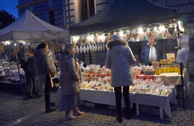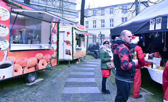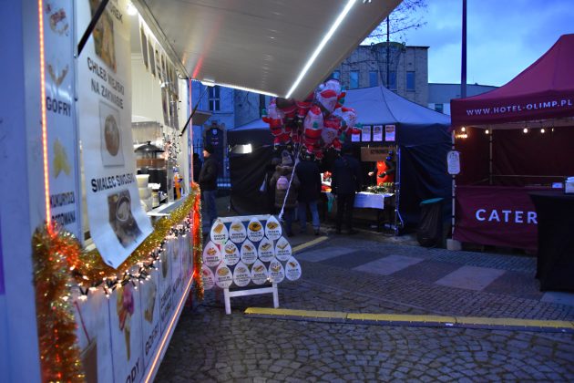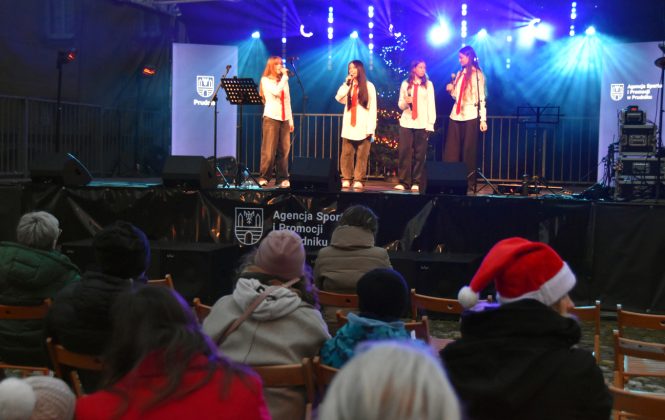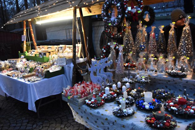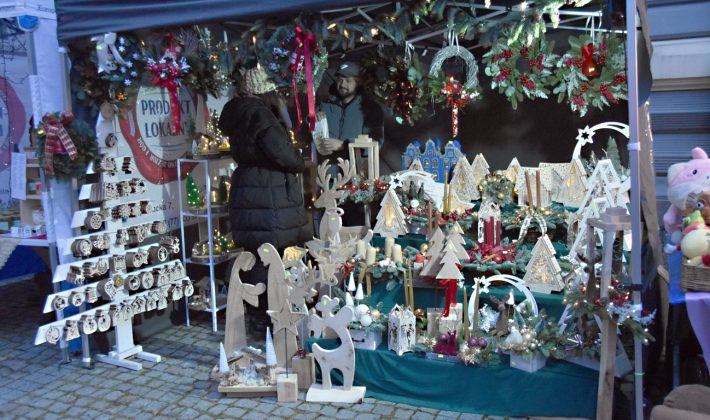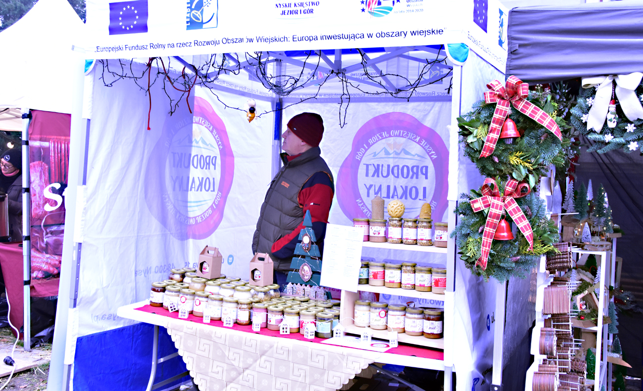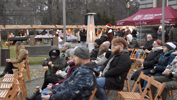 W sobotę 6 grudnia Agencja Sportu i Promocji w Prudniku zaprosiła do ogrodu Prudnickiego Ośrodka Kultury do udziału w Jarmarku Bożonarodzeniowym. Było mnóstwo stoisk: rękodzielnicy, twórcy ludowi, artyści, rzemieślnicy, szkoły, stowarzyszenia i instytucje, przedsiębiorcy i osoby prywatne oferujący świąteczny asortyment, w godz. od 10.00 do 20.00. Na plenerowej scenie obok POK występowali: Dziecięce i Młodzieżowe Studio Piosenki POK, Dominika Puchała, Kamila i Grzegorz Mięczakowscy, zespół The Backyard Project i Emilia Kawa, uczniowie I LO w Prudniku, Dawid Brzozowski, Piotr Szewczyk z kapelą góralską. Było oczywiście spotkanie z Mikołajem, Mikołajkowa Gra Terenowa, warsztaty malowania bombek z Agatą Wilczek, degustacje potraw wigilijnych. Dodatkowo, na wydarzenie przybyli MotoMikołaje. Barwny przejazd Mikołajów na motocyklach i quadach, tego dnia dotarł do Prudnickiego Ośrodka Kultury. Aura była niemal wiosenna i choć bark śniegu i zimowego klimatu, to jednak ciepły wieczór sprzyjał niespiesznemu zwiedzaniu, oglądaniu występów, konsumpcji i zakupom.