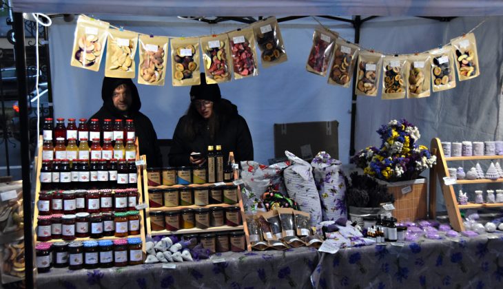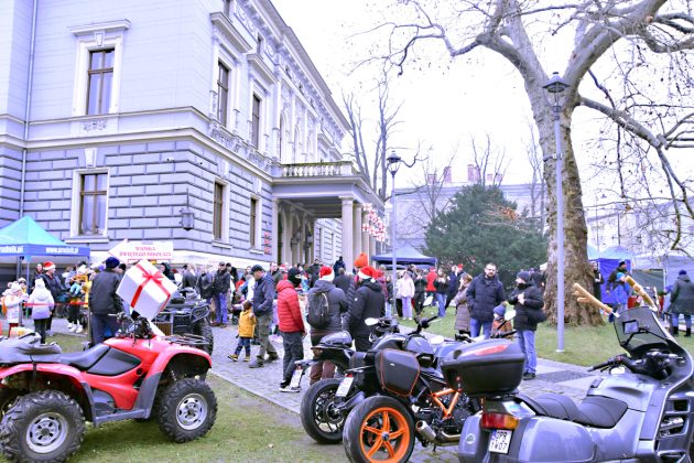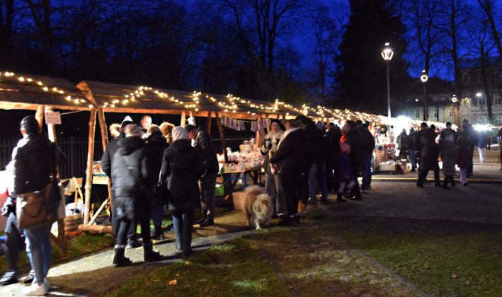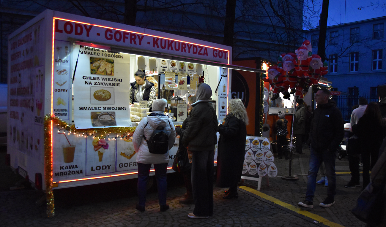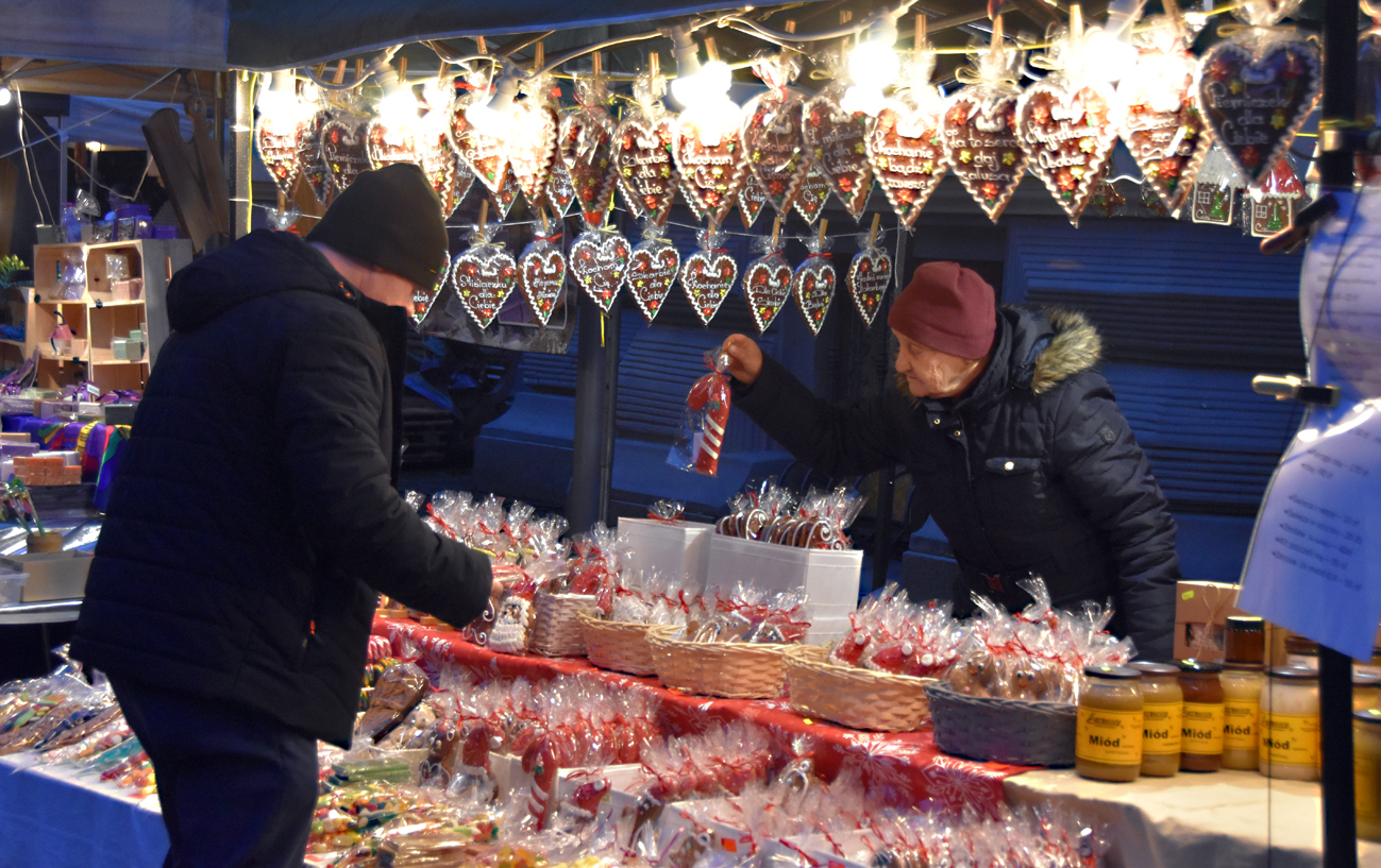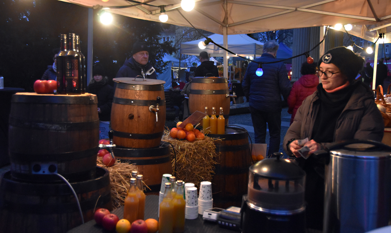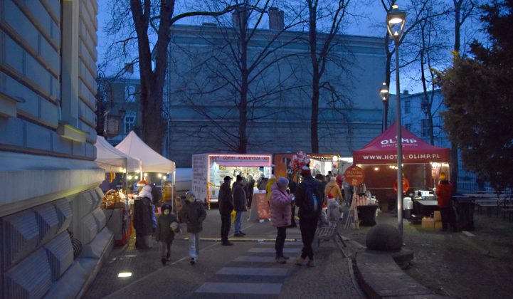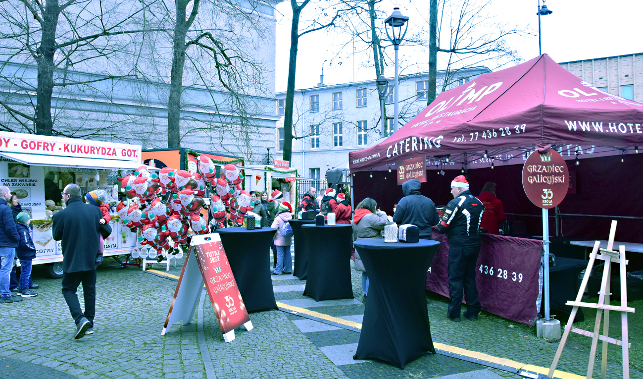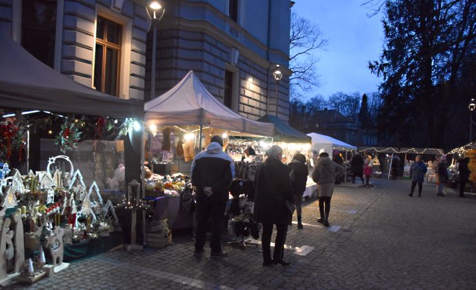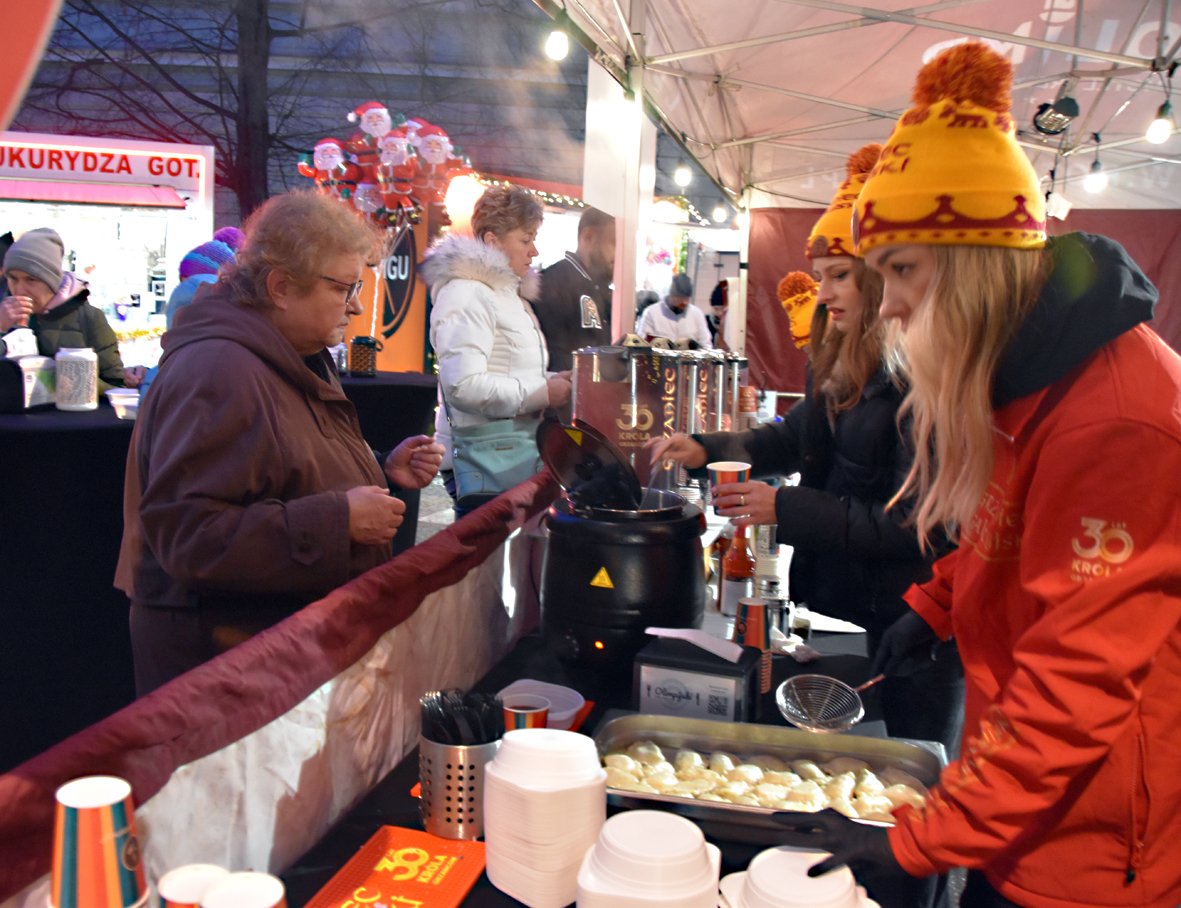 W sobotę 6 grudnia Agencja Sportu i Promocji w Prudniku zaprosiła do ogrodu Prudnickiego Ośrodka Kultury do udziału w Jarmarku Bożonarodzeniowym. Było mnóstwo stoisk: rękodzielnicy, twórcy ludowi, artyści, rzemieślnicy, szkoły, stowarzyszenia i instytucje, przedsiębiorcy i osoby prywatne oferujący świąteczny asortyment, w godz. od 10.00 do 20.00. Na plenerowej scenie obok POK występowali: Dziecięce i Młodzieżowe Studio Piosenki POK, Dominika Puchała, Kamila i Grzegorz Mięczakowscy, zespół The Backyard Project i Emilia Kawa, uczniowie I LO w Prudniku, Dawid Brzozowski, Piotr Szewczyk z kapelą góralską. Było oczywiście spotkanie z Mikołajem, Mikołajkowa Gra Terenowa, warsztaty malowania bombek z Agatą Wilczek, degustacje potraw wigilijnych. Dodatkowo, na wydarzenie przybyli MotoMikołaje. Barwny przejazd Mikołajów na motocyklach i quadach, tego dnia dotarł do Prudnickiego Ośrodka Kultury. Aura była niemal wiosenna i choć bark śniegu i zimowego klimatu, to jednak ciepły wieczór sprzyjał niespiesznemu zwiedzaniu, oglądaniu występów, konsumpcji i zakupom.